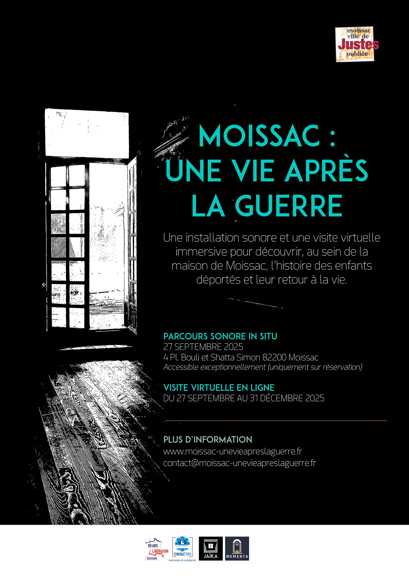 Entre témoignages réels et création sonore, ce dispositif raconte l'accueil, après la guerre, des enfants de retour de déportation, dans la maison de Moissac pour les plus petits, au Moulin pour les plus grands. Avec pour pilier le couple Shatta et Bouli Simon, et pour structure, les valeurs du scoutisme des Eclaireurs Israélites de France, Moissac fait renaître la vie chez ceux qui ont vécu l'horreur.