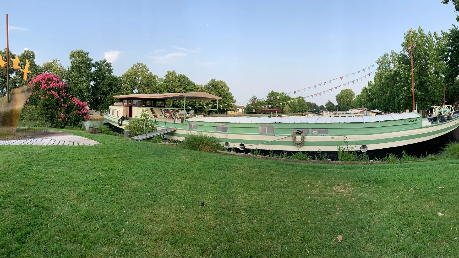 Ce magnifique navire de 30m de long, construit aux Pays-Bas en 1893, a été soigneusement restauré il y a deux ans par ses nouveaux propriétaires. Amarrée au Port Jacques-Yves Cousteau, le long de la vélo voie verte du Canal des 2 Mers à Castelsarrasin, cette péniche offre une escapade apaisante alliant histoire et confort.