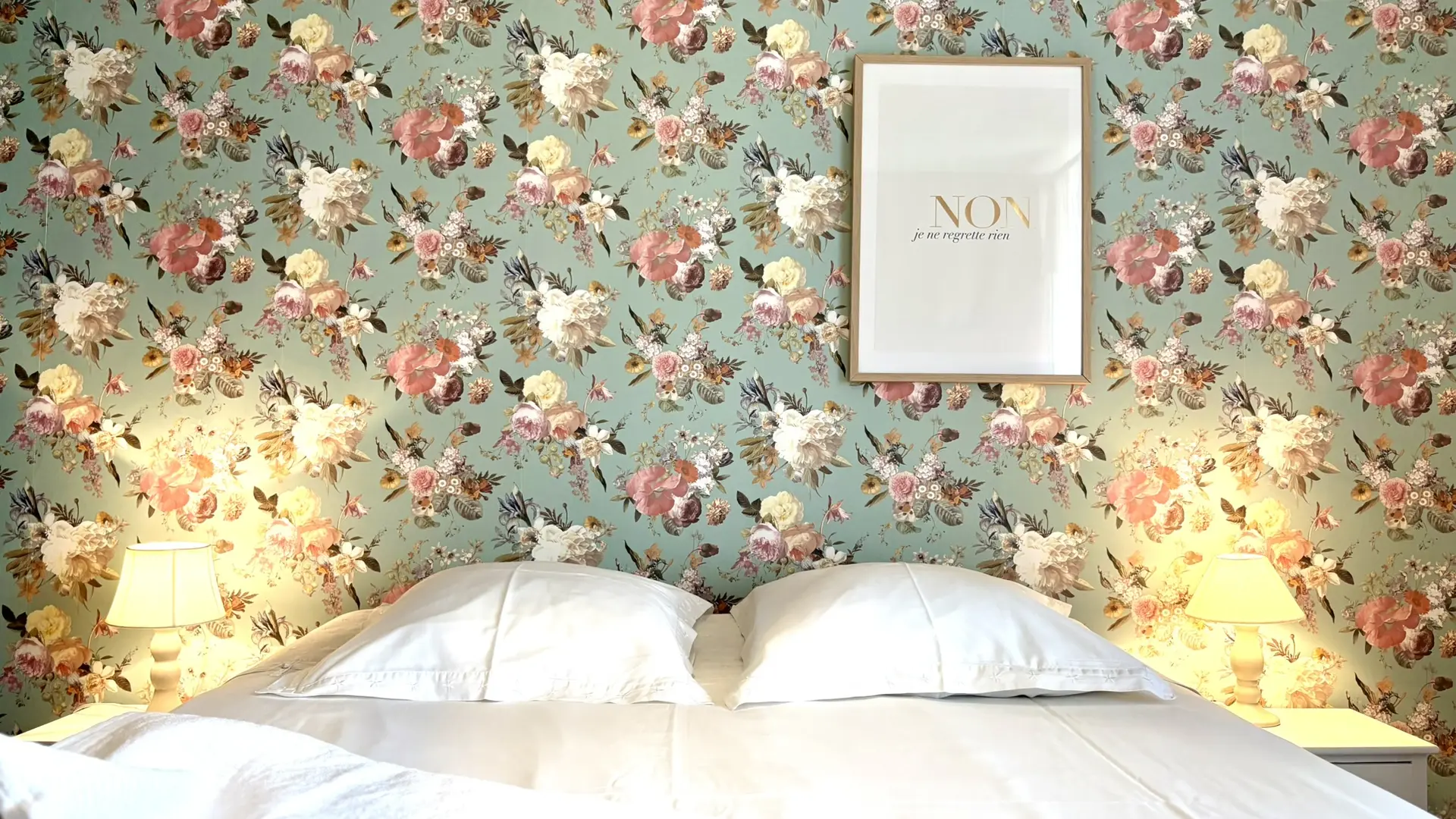 Chambre 1 : lit double (160 cm) et lit bébé.