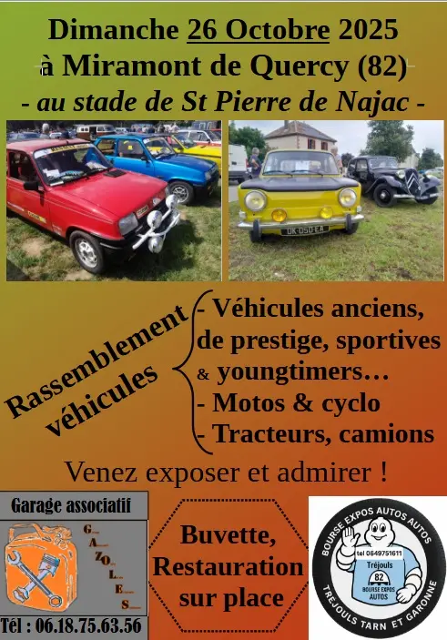 Véhicules anciens, de prestiges, sportive & youngtimers, motos & cyclos tracteurs & camion. buvette et restauration sur place.