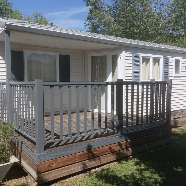 Sur un camping de 26 emplacements comprenant 20 emplacements nus et ombragés, 3 mobil-homes (4/6 pers.) et 3 autres mobil-homes (6/8 pers.), indépendants, de plain pied avec leur terrasse privative.