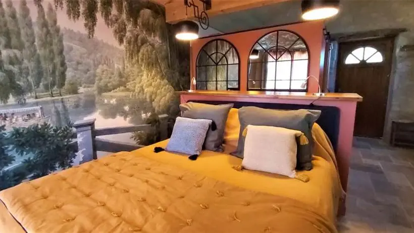Hébergement, Sur place avec accès indépendant, « Le gîte Bellevue » comprend : 1 séjour avec coin-cuisine aménagé donnant accès à la terrasse surplombant le jardin paysagé, 1 chambre très cosy. Un raffinement certain pour la décoration et l’ambiance chaleureuse du lieu. Sanitaires privés (salle d’eau/wc).Restauration