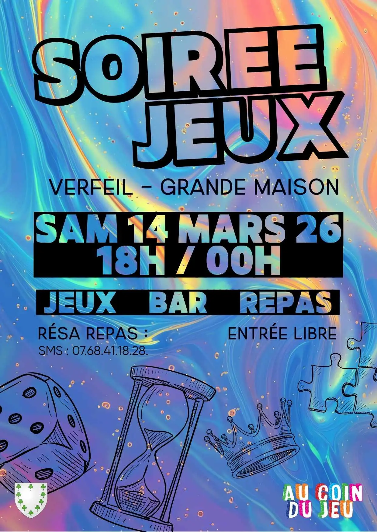 Jeux, bar, repas (réservation repas : texto au 07.68.41.18.28)