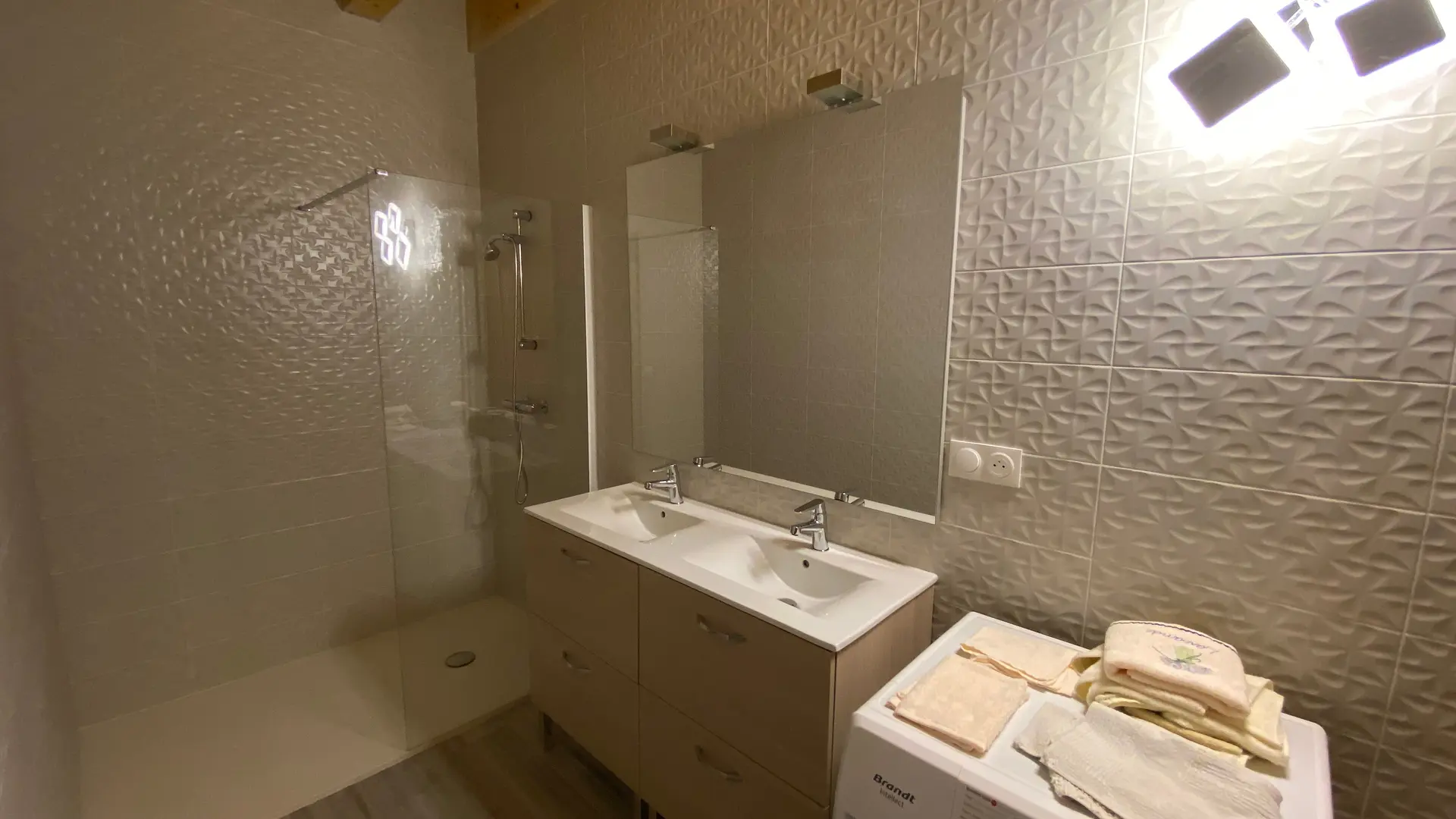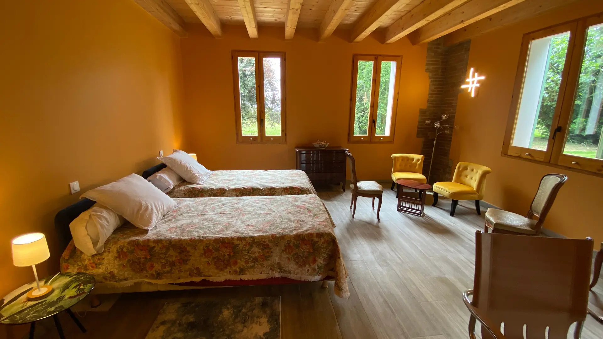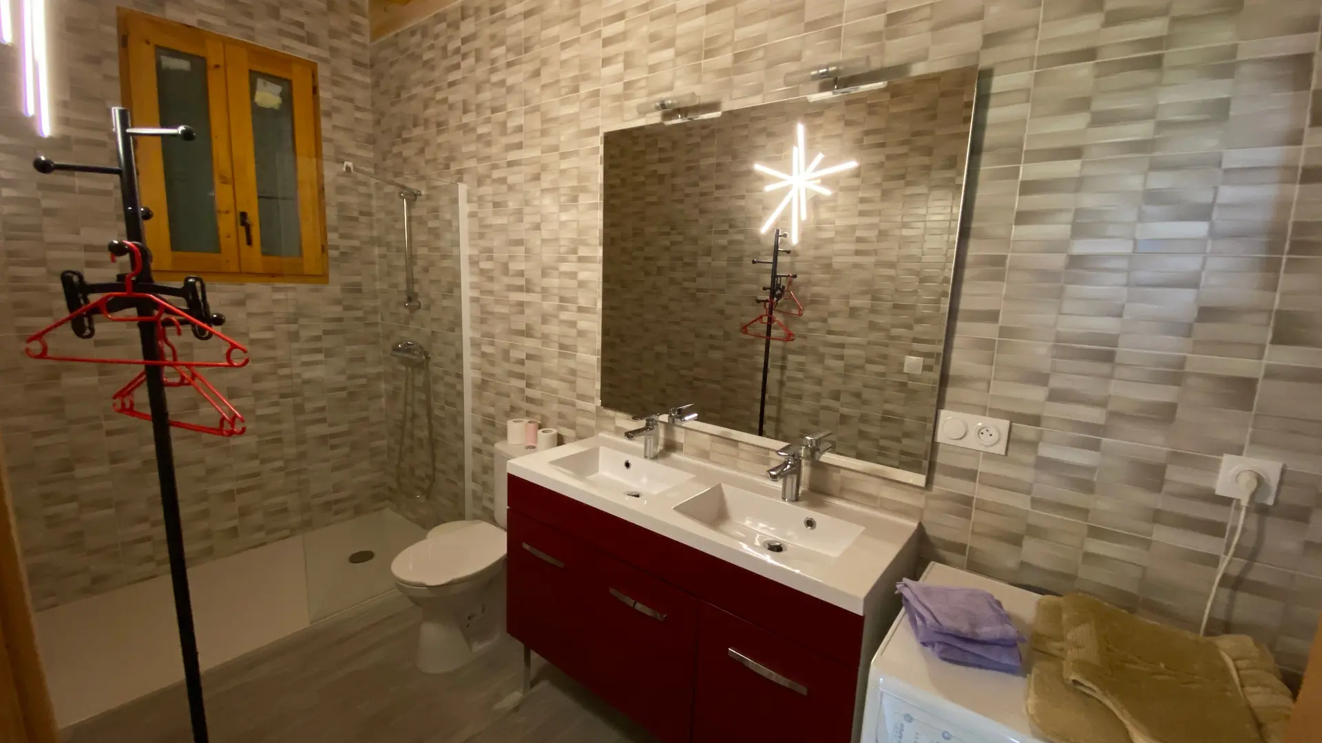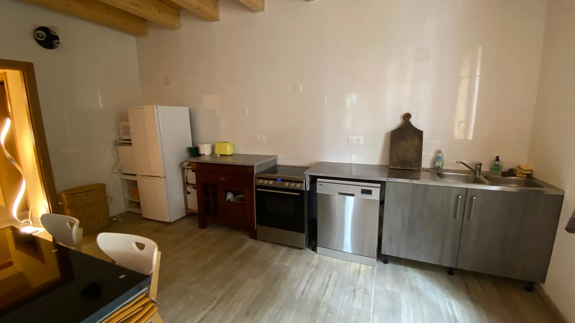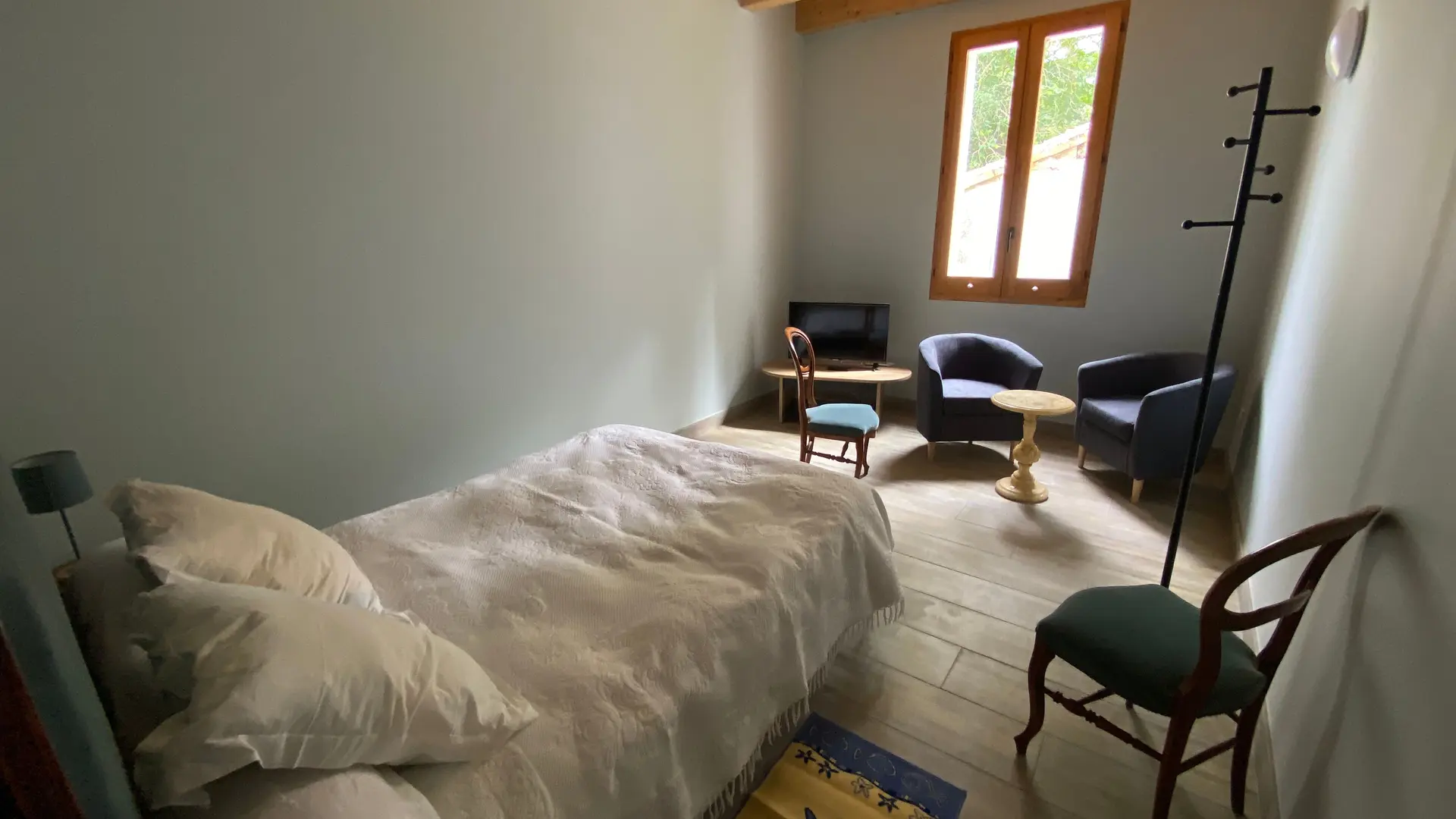 Le logement comprend au rez-de chaussée une salle à manger (table et chaises), un salon (canapé, 2 fauteuils, TV, table basse) une cuisine (gazinière avec plaque et four, réfrigérateur, congélateur). Un grand couloir dessert 3 chambres chacune a une salle d'eau avec wc et un lave-linge. 2 chambres ont 2 lits 0,90 et 1 chambre avec 1 lit 140. Pas de wifi. Linge de lit fourni et compris dans le prix. Pas de linge de toilette. Lave-linge dans chaque salle d'eau pour plus d'autonomie. Espace extérieur : grand terrain clôturé et arboré. Salon de jardin sous la tonnelle et plancha électrique.